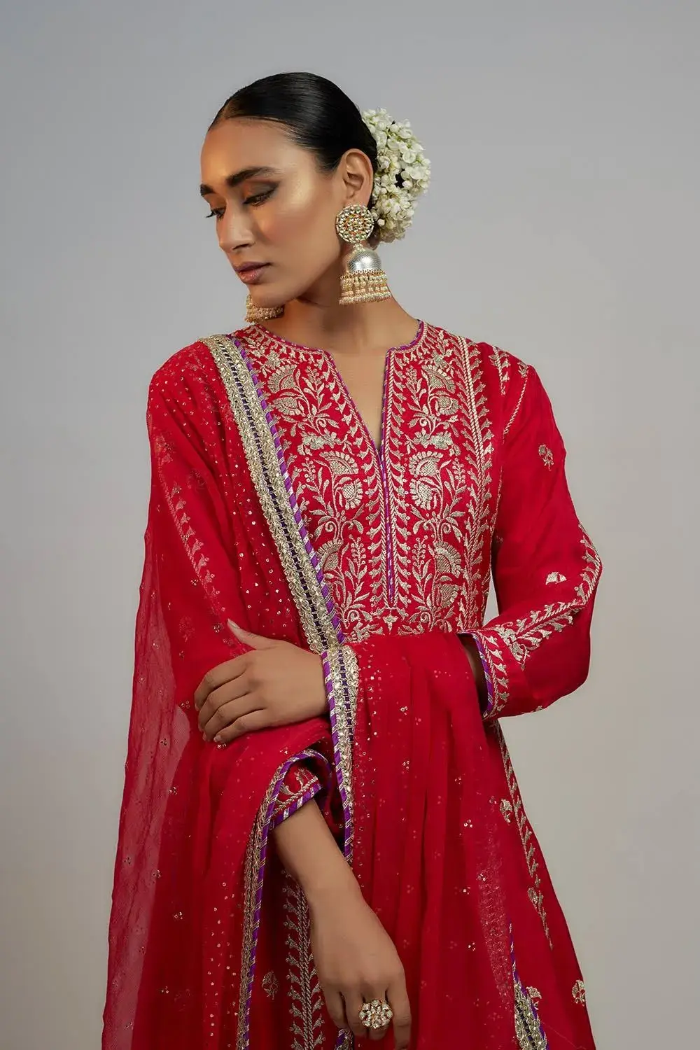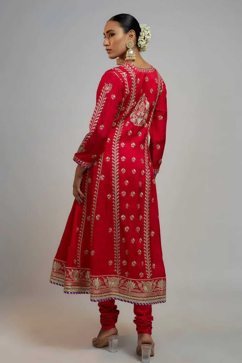This Anarkali, paired with a churidar and a beautiful badla dupatta, features flowing kalis down the waistline, adding a classic and versatile touch for any occasion. . This is our signature BhumikaVAID ANKON No. of components-3
