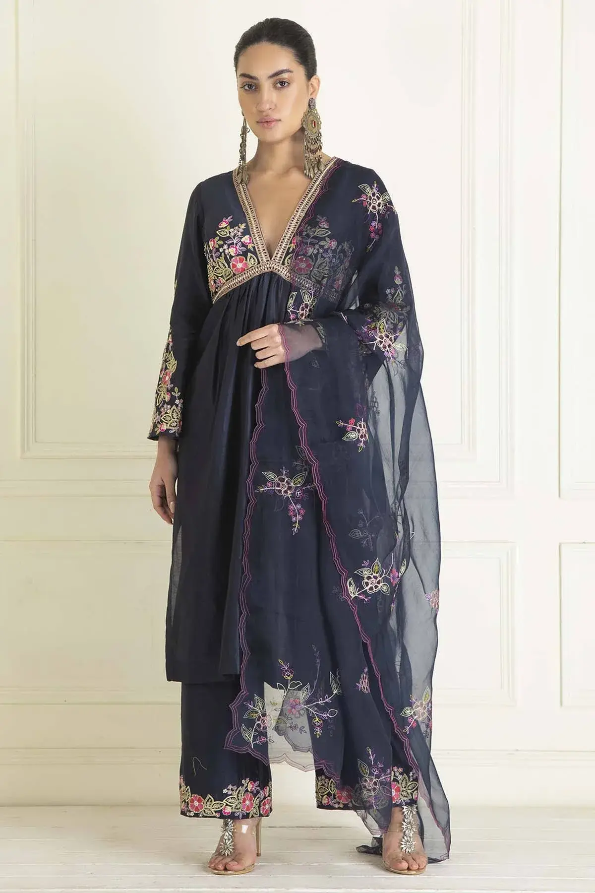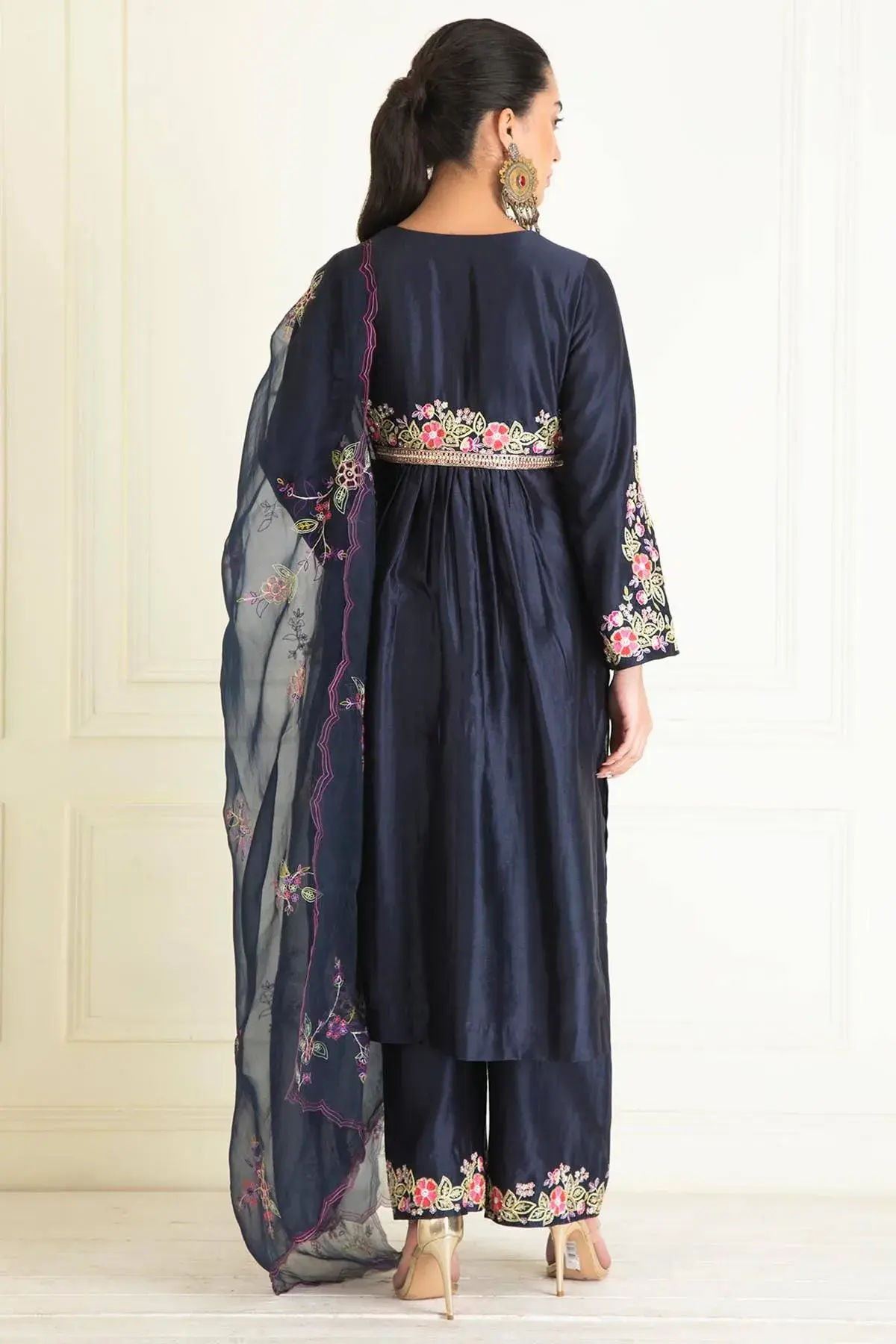 Buy Aastha Jain Midnight blue chanderi anarkali with sequins embroidery paired with pants & dupatta For Women Available online at ScrollnShops
