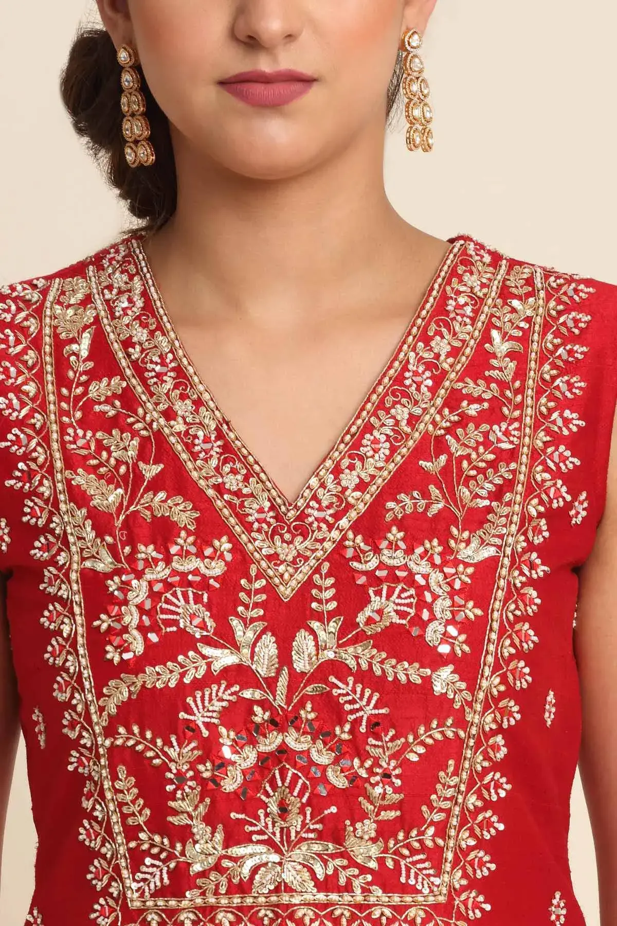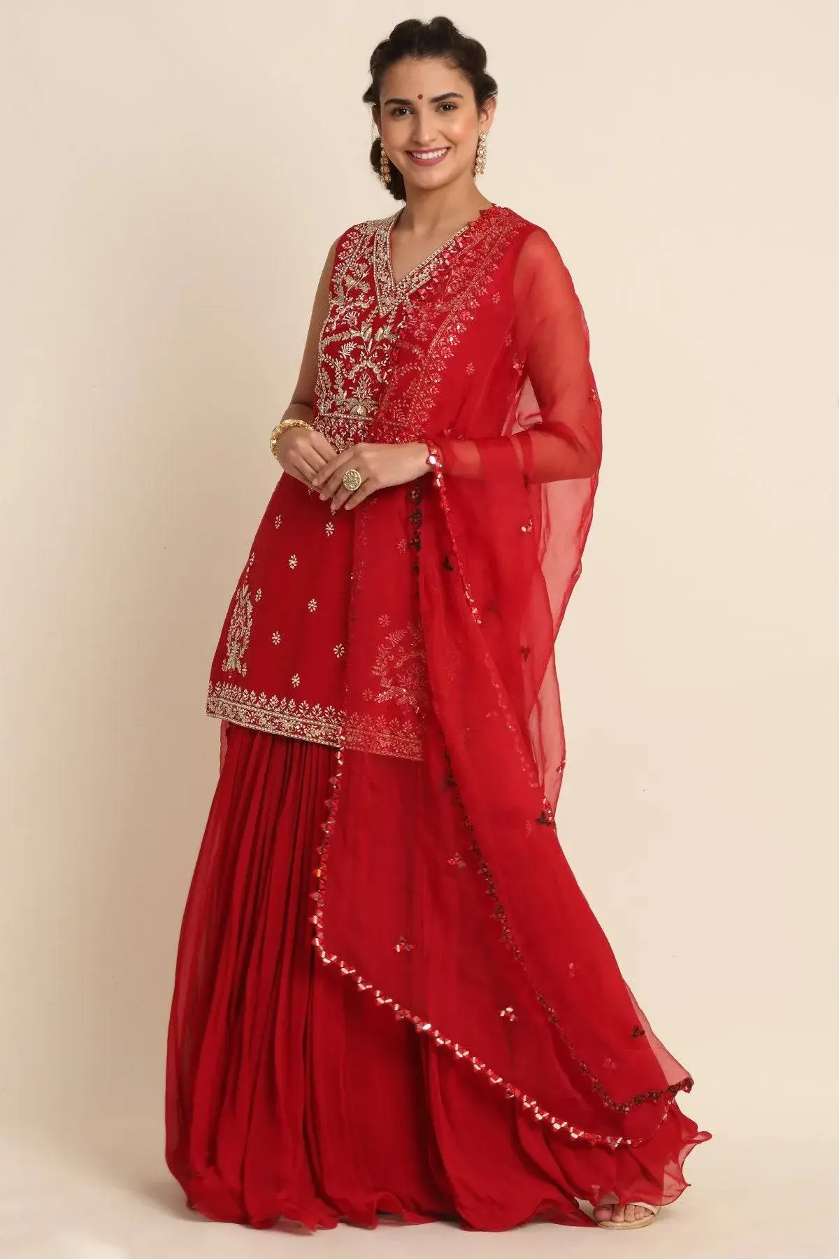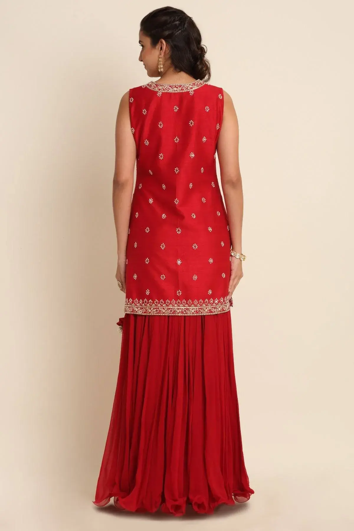 Buy Aastha Jain Embroidered Kurta & Skirt Set For Women Available online at Scrollnshops XS / Red