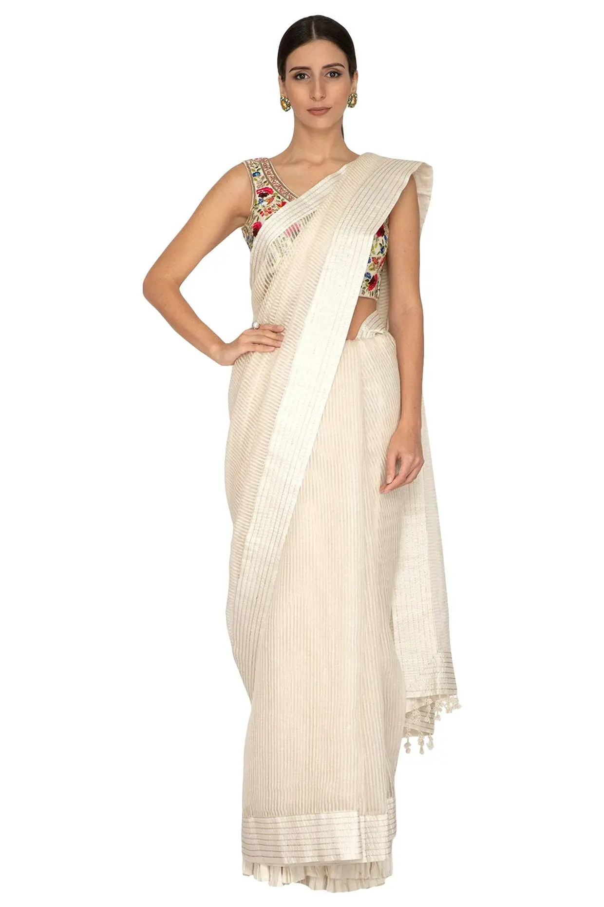 Buy Aastha Jain Embroidered Saree Set For Women Available online at Scrollnshops S / White