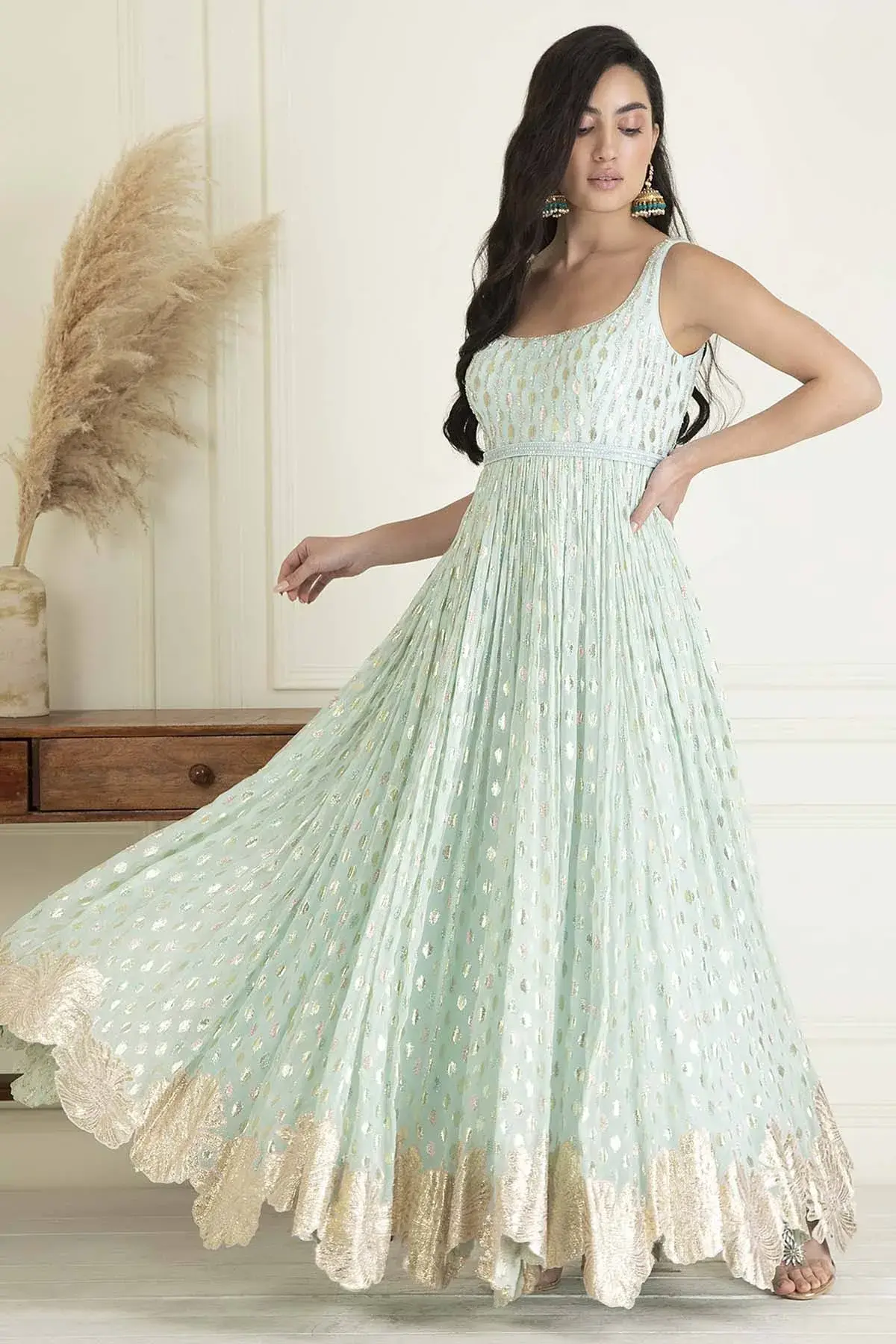 Buy Powder blue lurex georgette anarkali with sequins & beads embroidery, paired with dupatta by Designer Aastha Jain For Women Available online at ScrollnShops