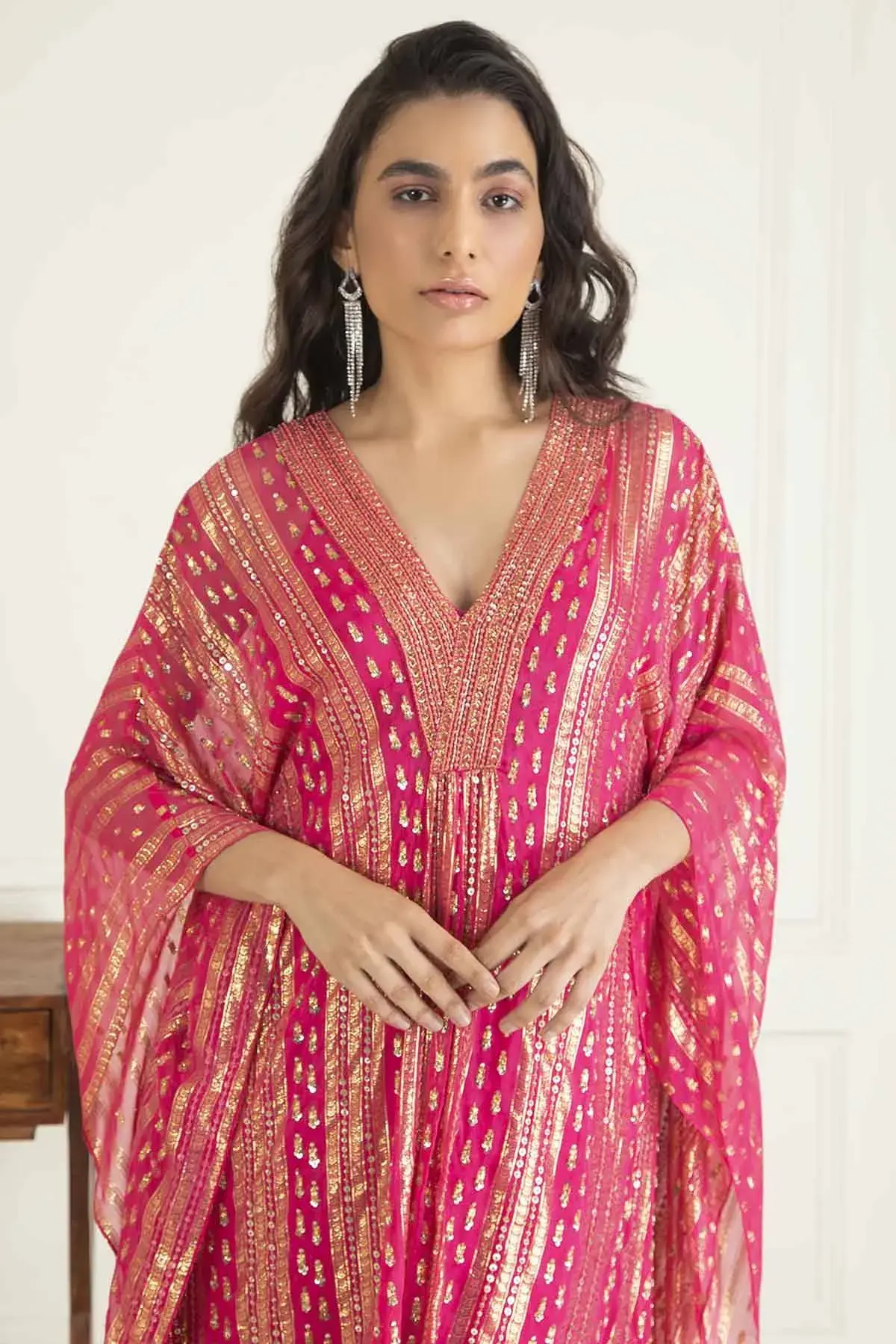 Buy Hot pink lurex georgette kaftan with sequins embroidery, paired with palazzo by Designer Aastha Jain For Women Available online at ScrollnShops