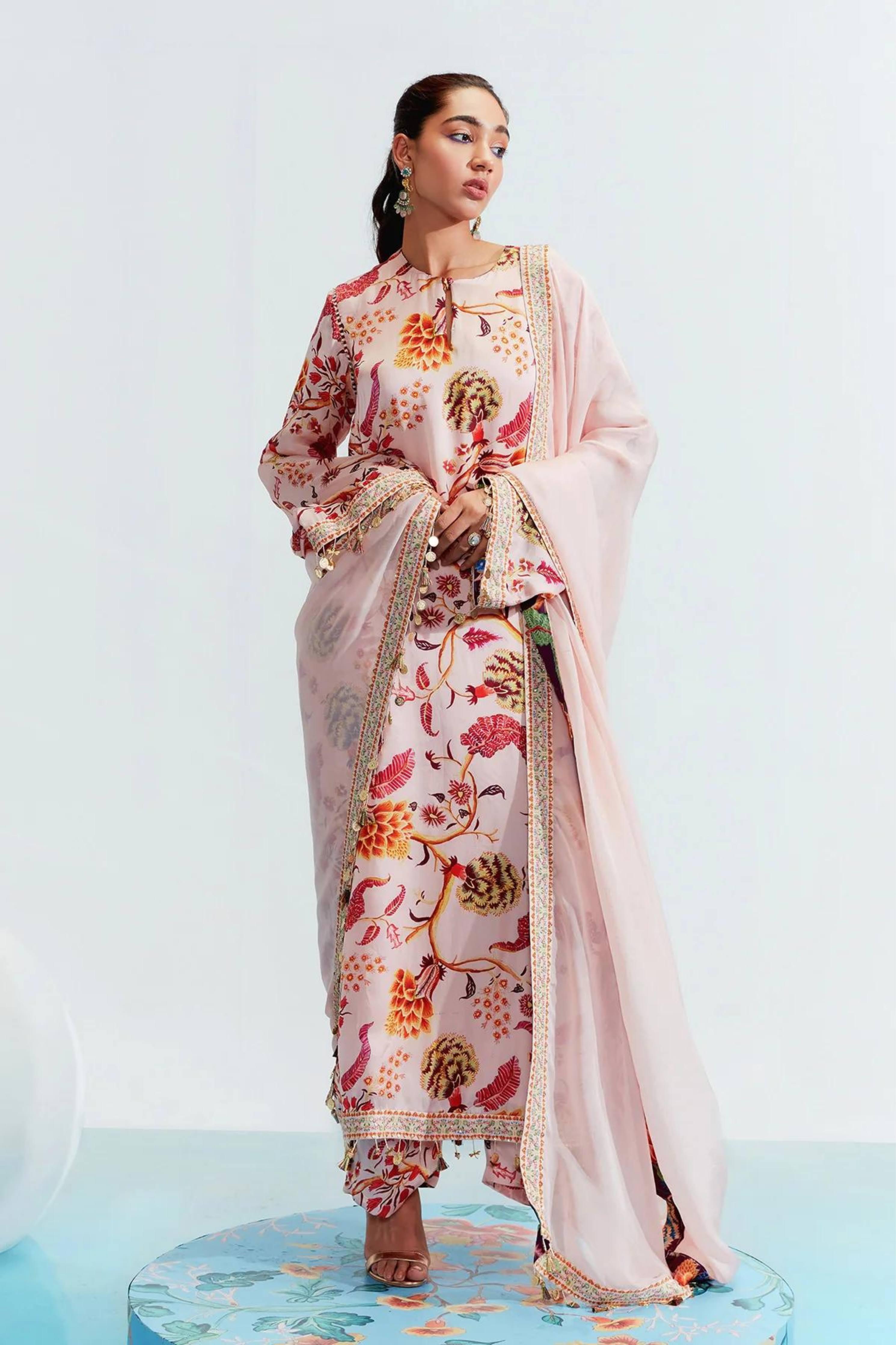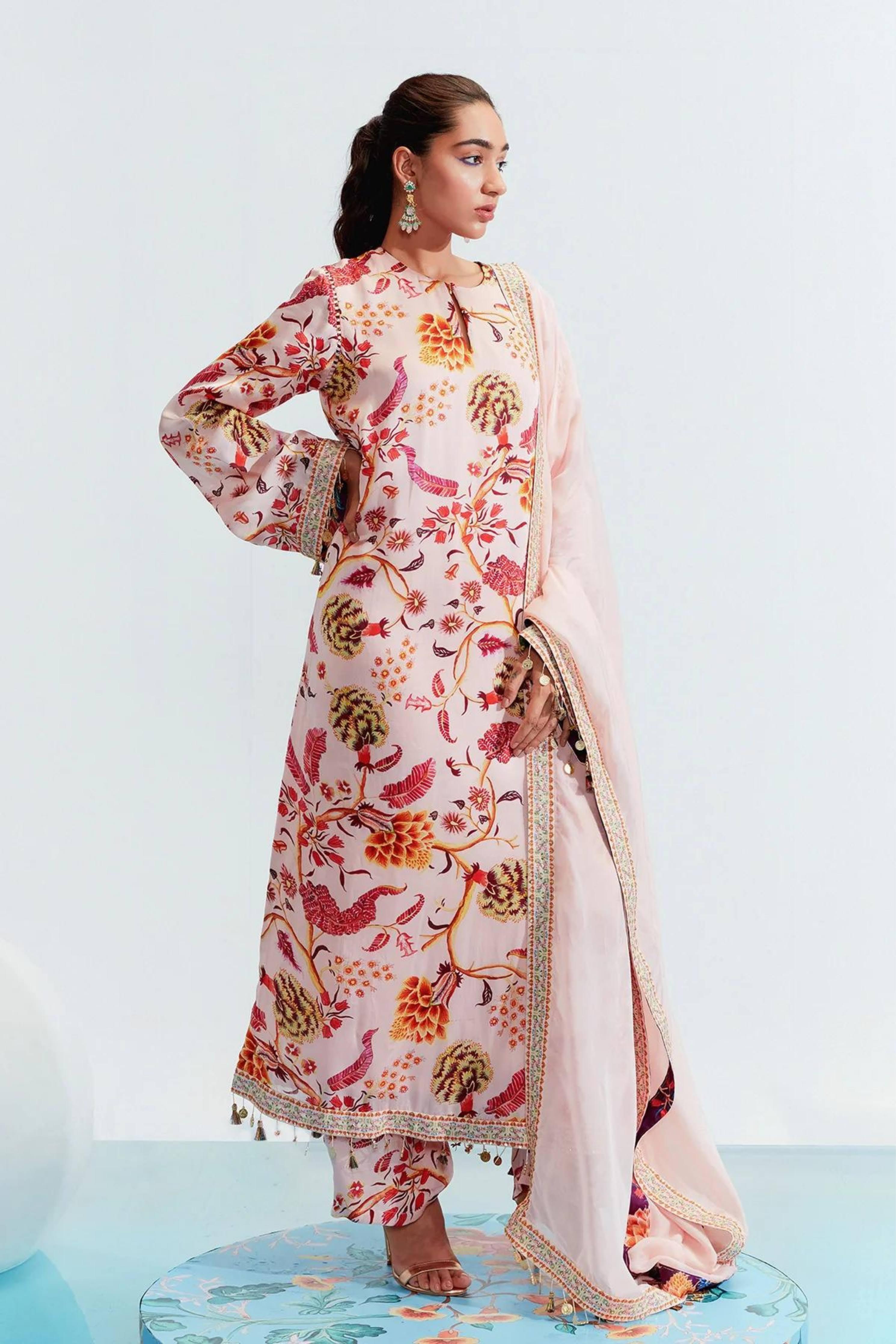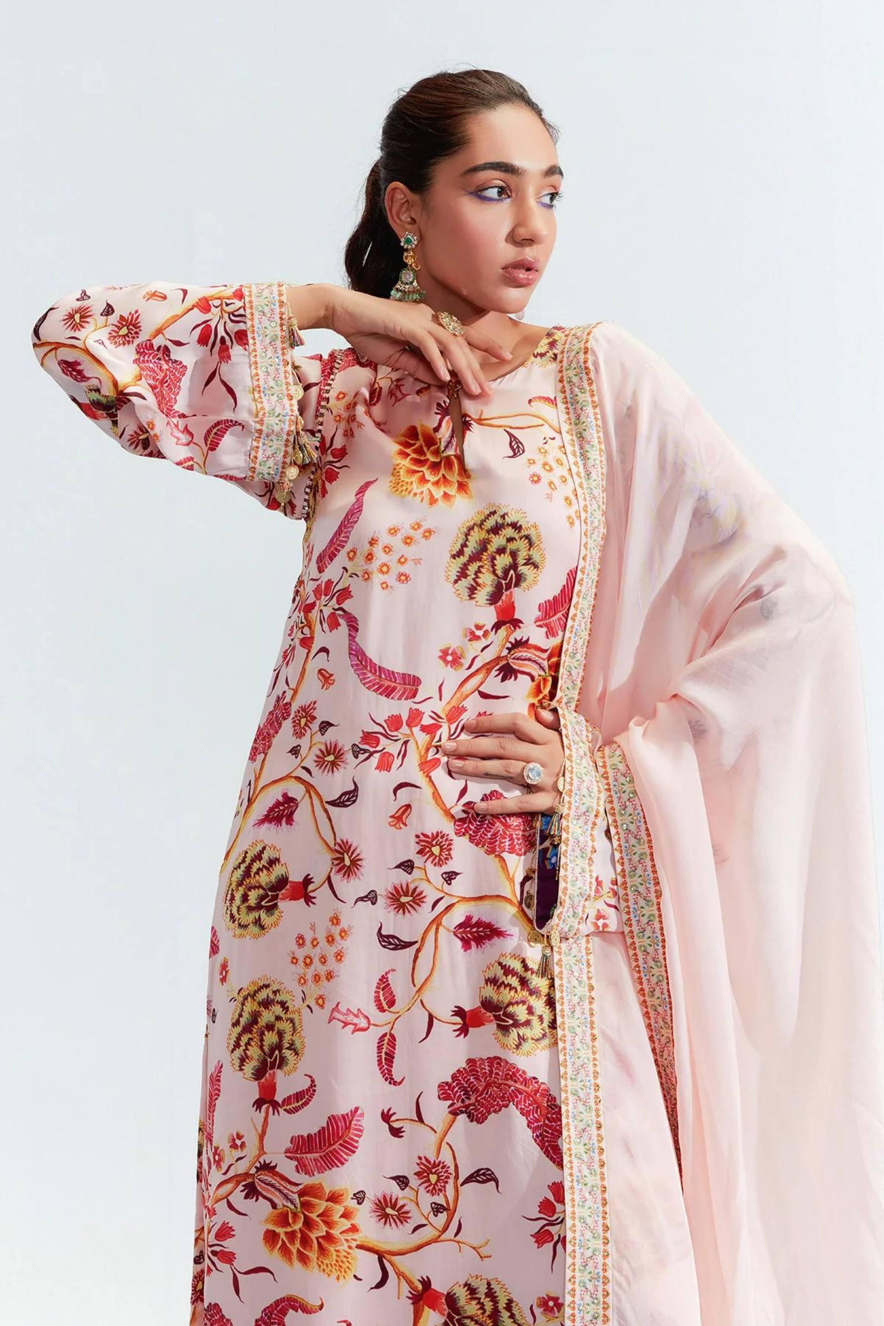 Eesha Mahajan - Tahira Nude Embroidered Kurta Set S