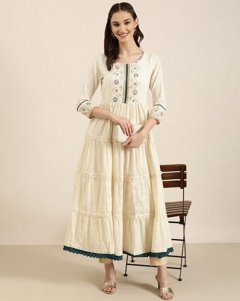 Embroidered Round-Neck Anarkali Kurta
