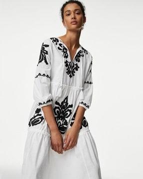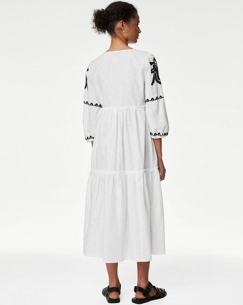 Embroidered Tiered Cotton Beach Dress