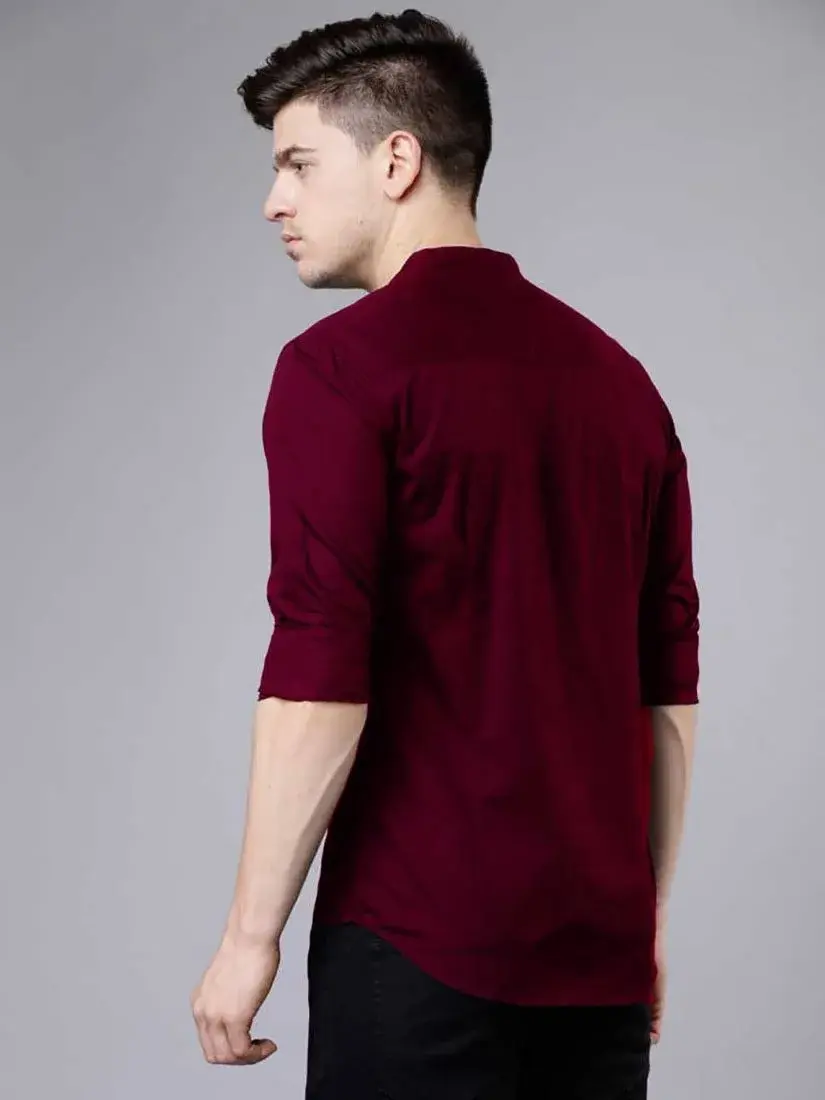 This Is A Best Casual Wear Shirt With Mandarin Collar , Long Sleeves With Button Cuffs , Full Buttoned Placket On The Front, Yoke On The Back, Curved. Pair This Along With A Good Pair Of Denim Or Chinos And Loafers For A Sharp And Dapper Look.