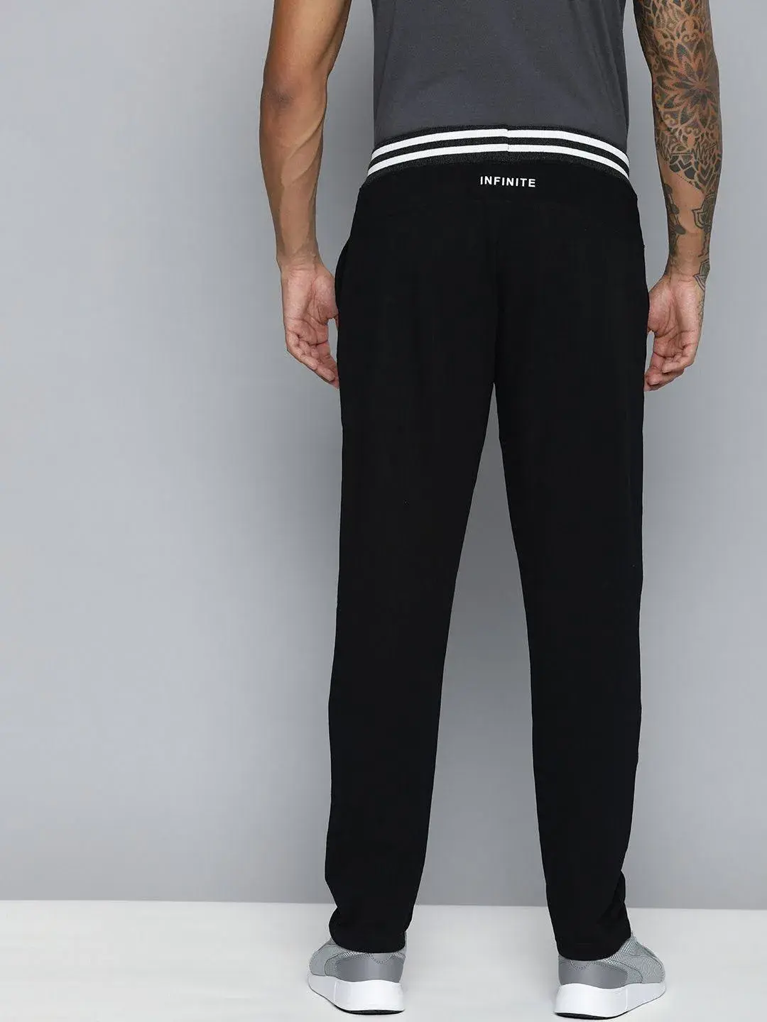 Black Printed Detail Regular Fit Track pants, have an elasticated waistband with drawstring closure, 2 pockets, regular length, straight hems