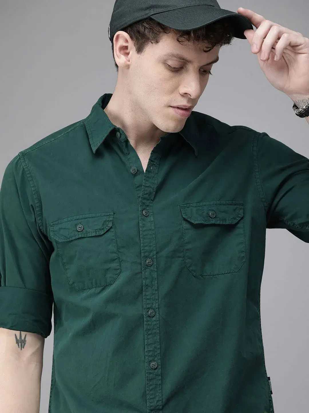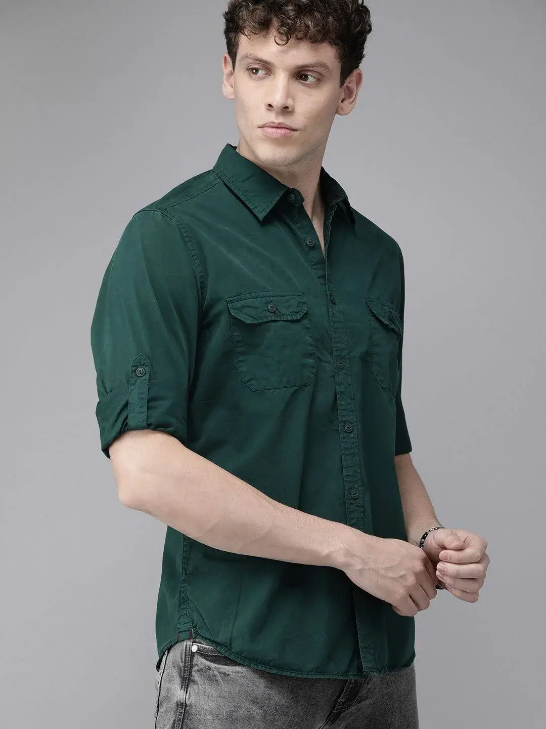 Roadster Men Green Regular Fit Solid Casual Sustainable Shirt (42) by SANKAN