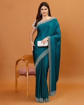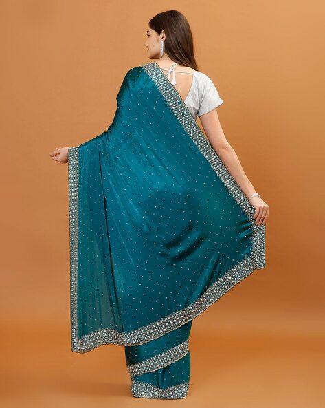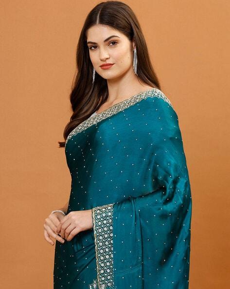 Teal Embellished Chinon Saree