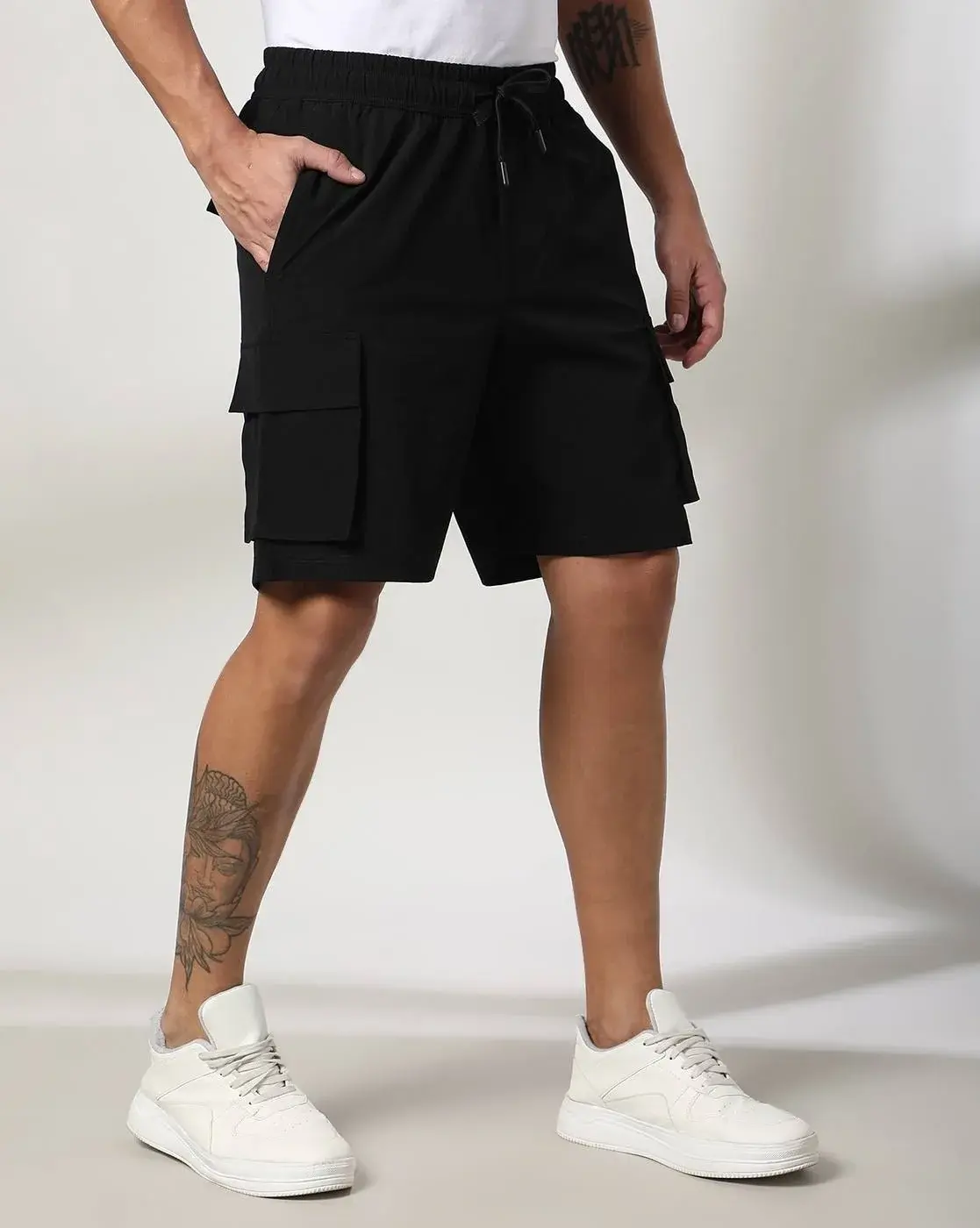 Teamspirit Men Regular Fit Cargo Shorts For Men (Black, L)