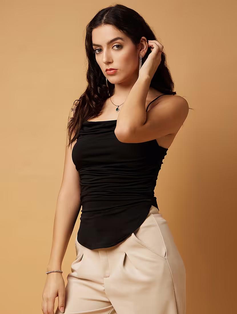 women black shoulder strap tank top
