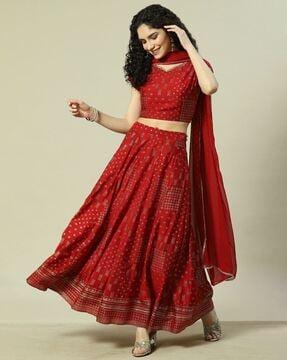 Women Floral Woven Flared Lehenga Choli Set with Dupatta