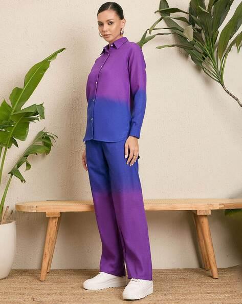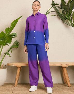 Women Ombre-Dyed Linen Shirt & Trousers Co-Ord Set