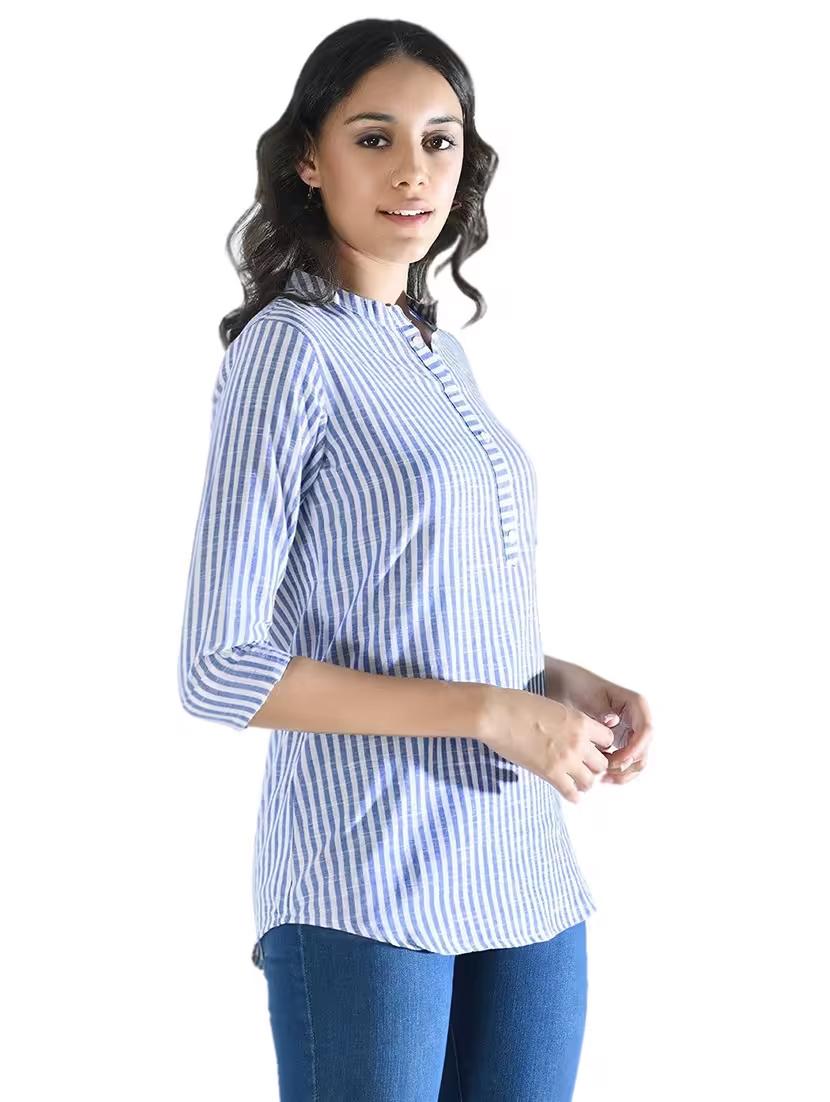 women's straight mandarin neck top